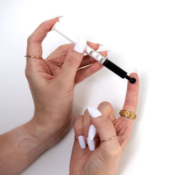 0.2 mL spreads to about 15 mm, roughly the width of the bottom of the 10 mL plunger. This is equivalent to 80 mg of CBD.
